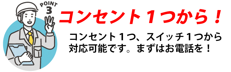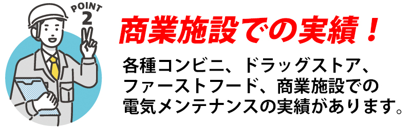 電気修理センターでは、日々の暮らしに不可欠な電気の修理やメンテナンスを行っています。長年にわたる各種コンビニ、ドラッグストア、ファーストフード、商業施設などの電気メンテナンスに携わってきました。ご家庭でも、コンセント一つから修理にお伺いいたします。